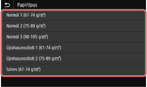 Válassza ki a bejegyezni kívánt papírtípust, és nyomja meg az