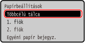 Ha mindig ugyanolyan papírt használ a többcélú tálcában, akkor érdemes bejegyeznie a papírméretet és a papírtípust. Így nem fog megjelenni a papírbeállítási képernyő, és nem kell minden alkalommal konfigurálnia a beállításokat.