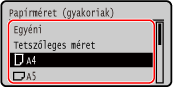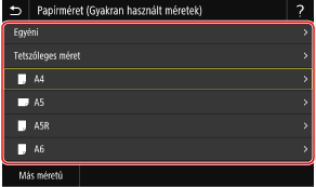 A képernyőn nem látható papírméreteket a képernyő görgetésével tekintheti meg.
