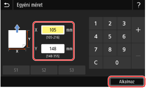 Ha regisztrálja a gyakran használt nem szabványos méreteket, akkor az [S1]–[S3] gomb megnyomásával gyorsan előhívhatja ezeket.
