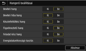 Beállíthatja, hogy a készülék hangjelzéssel figyelmeztessen-e a különböző műveletekre és állapotokra.