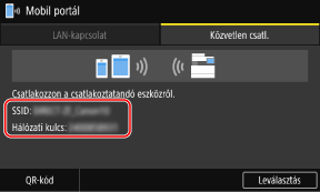 Ellenőrizze a készülék SSID-azonosítóját és hálózati kulcsát a [Közvetlen csatl.] lapon.