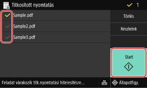 Jelölje be a nyomtatni kívánt védett adatokhoz tartozó jelölőnégyzetet, és nyomja meg a [Start] gombot.