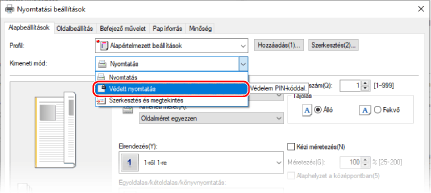 A [Kimeneti mód] menüpontban válassza a [Védett nyomtatás] lehetőséget.