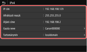 Megtekintheti a készülékhez beállított IP-cím, például az IPv4- vagy IPv6-cím beállítását.