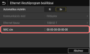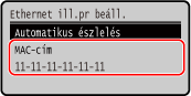 Amikor a készülék vezetékes LAN-hálózathoz csatlakozik, megtekintheti a készülékhez beállított MAC-címet.