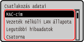 A vezeték nélküli LAN-hálózat MAC-címének megtekintése és kapcsolati adatainak megtekintése