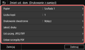 [Zmień ustawienia domyślne (drukowanie z nośnika pamięci)]