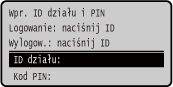 Kiedy ustawiony jest identyfikator menedżera systemu, dla operacji wymagających uprawnień administratora wyświetlany jest ekran logowania. Wprowadź identyfikator menedżera systemu i kod PIN, aby się zalogować.