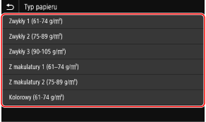 Wybierz typ papieru do zarejestrowania, a następnie naciśnij