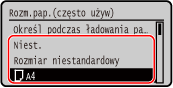 Gdy załadowany jest papier o rozmiarze niestandardowym