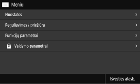 valdymo skydelyje. Šiame ekrane galite patikrinti aparato informaciją, naudojimą ir žurnalus, tinklo parametrus ar klaidų informaciją. Ekranas [Būsenos ekranas]|