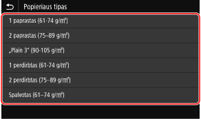 Pasirinkite popieriaus tipą, kurį norite užregistruoti, ir paspauskite