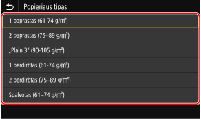Pasirinkite į popieriaus stalčių įdėto popieriaus tipą ir paspauskite