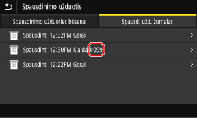 Jei negalima spausdinti, internetinės faksogramos negalima gauti arba įvyksta kitokia klaida, ataskaitoje arba užduočių žurnale rodomas klaidos kodas (trijų skaitmenų numeris, prasidedantis „#“).