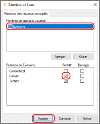 A [Usuaris], seleccioneu [Tothom]  [Llegir i escriure].