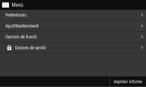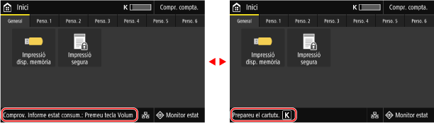 ] al tauler de control. De manera predeterminada, la pantalla [Inici] es mostra després d'engegar l'alimentació, immediatament després de tancar-se la pantalla d'inici i immediatament després d'iniciar la sessió. Pantalla [Inici]|