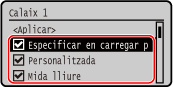 Les mides de paper que tinguin les caselles desmarcades no apareixeran a la pantalla de configuració de paper.