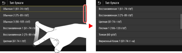 Коснитесь экрана пальцем и резко проведите по нему. Экран переместится в направлении движения пальца. Например, экран [Главный] перемещается на одну вкладку в направлении движения пальца.