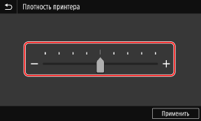 Нажимая кнопки [+] и [-] отрегулируйте значение. Когда на экране отображается ползунок (такой, как показан ниже), значение можно регулировать, перетаскивая его влево или вправо.
