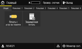 [Выход]Отображается при входе пользователя в систему. Нажмите, чтобы выйти из системы после выполнения операций на аппарате.