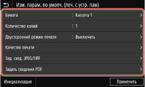 Кроме того, настройки параметров можно сбросить до заданных здесь значений, нажав [Сброс] на экране настройки печати.
