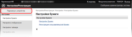 Для перезапуска аппарата с помощью удаленного ИП требуются привилегии администратора.