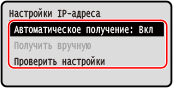 1 | Нажмите [Автоматическое получение]. Отображается экран [Настройки IP-адреса (автом. получение)]. |