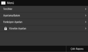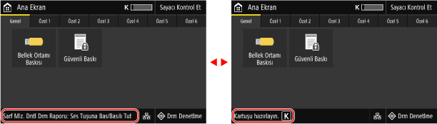 ] öğesine bastığınızda görüntülenir. Güç açık konuma getirildikten sonra, başlangıç ekranı kapandıktan hemen sonra ve oturum açtıktan hemen sonra varsayılan olarak [Ana Ekran] görüntülenir. [Ana Ekran] Ekranı|