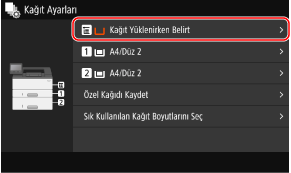 Kumanda panelinde, [Ana Ekran] içinde [Kağıt Ayarları] öğesini seçin ve