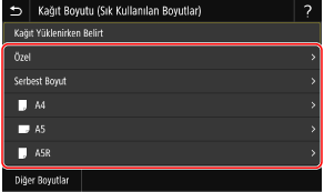 [Diğer Boyutlar] öğesine basın ve görüntülenen listeden kağıt boyutunu seçin.