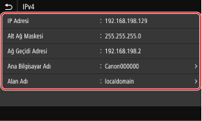 Makineye kaydedilen IPv4 adresi ve IPv6 adresi gibi IP adresi ayarlarını görüntüleyebilirsiniz.