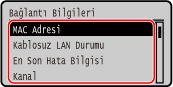 Kablosuz LAN'ın MAC Adresini ve Bağlantı Bilgisini Görüntüleme
