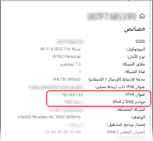 عرض معلومات اتصال الشبكة للكمبيوتر