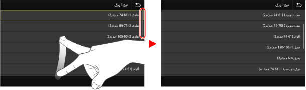 عند ظهور شريط التمرير على الشاشة، يشير إلى أن هناك عناصر أو معلومات لا يمكن عرضها على الشاشة بالكامل. قم بالتحريك أو السحب لتمرير الشاشة في الاتجاه الذي حرّكت فيه طرف إصبعك.