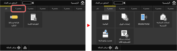 عند لمس علامة تبويب، يتم عرض شاشة علامة التبويب المحددة.