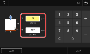 يمكنك تسجيل الأحجام عند استخدام ورق بحجم غير قياسي محدد بشكل متكرر. ويمكنك استدعاء الورق من شاشة إدخال الحجم، ما يجنبك مشكلة إدخال الحجم.