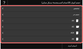 ، ثم حدد حجم الورق من القائمة المعروضة.