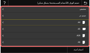 ، ثم حدد حجم الورق من القائمة المعروضة.