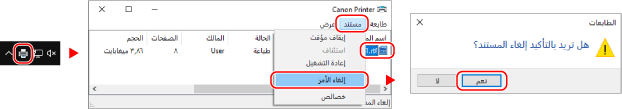 في حالة عدم عرض الشاشة أعلاه، انقر نقرًا مزدوجًا فوق رمز الطابعة في منطقة إخطارات Windows، وحدد المستند المطلوب إلغاؤه، ثم انقر فوق [مستند]