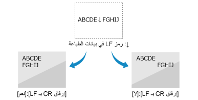 في حالة تحديد [لا]، سينتقل موضع الطباعة إلى السطر التالي، تحت رمز LF المستلم.