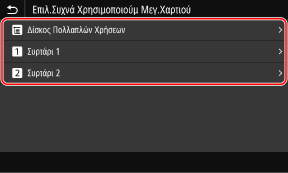 Επιλέξτε [Επιλ.Συχνά Χρησιμοποιούμενων Μεγ.Χαρτιού] και πατήστε