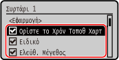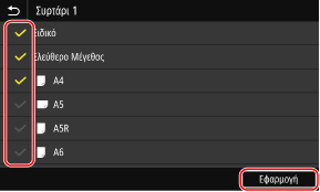 Καταργήστε την επιλογή από τα πλαίσια ελέγχου των μεγεθών χαρτιού που θέλετε να αποκρύψετε και πατήστε [<Εφαρμογή>]