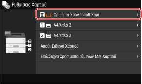 Στον πίνακα ελέγχου, επιλέξτε [Ρυθμίσεις Χαρτιού] στην [Αρχική] οθόνη και πατήστε