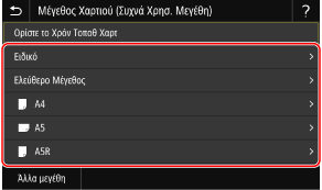 Πατήστε [Άλλα μεγέθη] και επιλέξτε το μέγεθος χαρτιού από την εμφανιζόμενη λίστα.