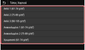 Επιλέξτε τον τύπο χαρτιού προς καταχώριση και πατήστε