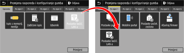 Gumbi na zaslonu [Početni zaslon] mogu se prerasporediti i premjestiti na drugu karticu.