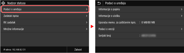 Dodirom naziva ili gumba stavke odabire se ta stavka. Prikazat će se odabrani zaslon ili će se pokrenuti odabrana funkcija.