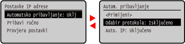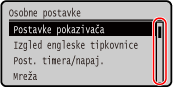 zaslon se pomiče u pritisnutom pravcu. Trenutno odabrana stavka izbornika prikazana je u kontrastu.