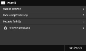 Automatsko poništavanje postavkiAko se na uređaju ne pokreću nikakvi postupci, po zadanom se nakon nekog vremena postavke konfigurirane na zaslonu poništavaju i prikazuje se [Početni zaslon]. Možete promijeniti vrijeme nakon kojeg se postavke poništavaju i zaslon koji se nakon toga prikazuje.